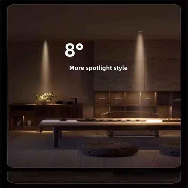 | Góc Chiếu Siêu Hẹp | 8° | Tạo hiệu ứng “chiếu điểm” mạnh mẽ, tập trung ánh sáng chính xác, làm nổi bật các bức tranh, tác phẩm nghệ thuật, hoặc đồ vật trang trí. |